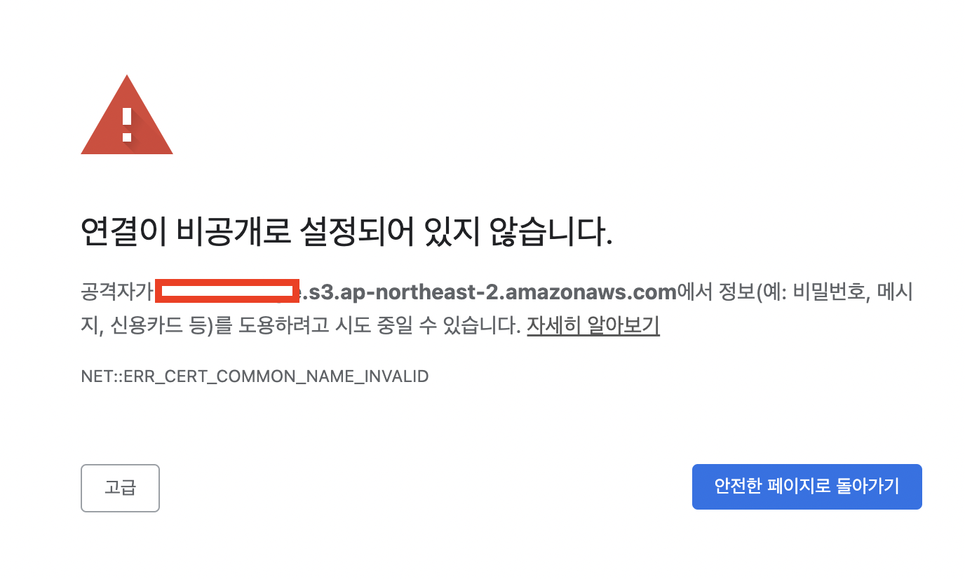 s3의 보안 인증서는 *.s3.{region-code}.amazonaws.com 에 대해 제공을 합니다. 하지만 와일드카드(*)는 하나의 하위도메인만 취급하기 때문에 lim.ovob.s3.{region-code}.amazonaws.com 과 같은 링크에서는 유효하지 않습니다.