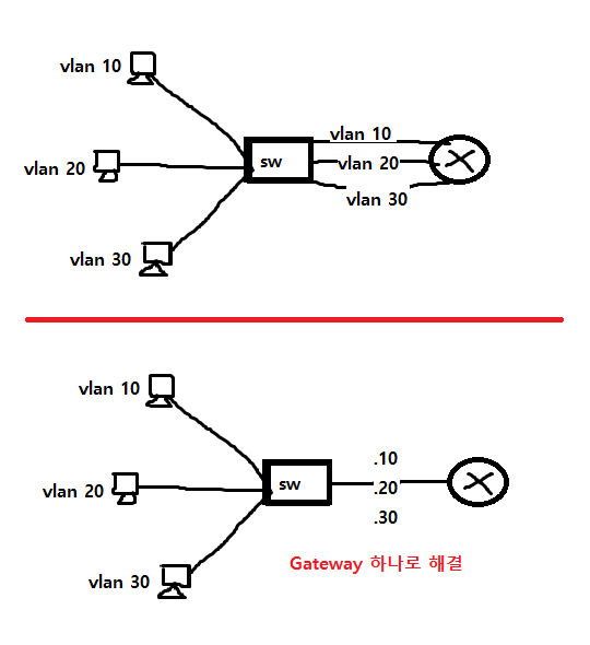 즉 VLAN은 L2에서 Broadcast domain을 소프트웨어적으로 나누는 방식으로, 다른 VLAN 장치가 통신하려면 반드시 L3장치의 중계를 거쳐야 합니다.
