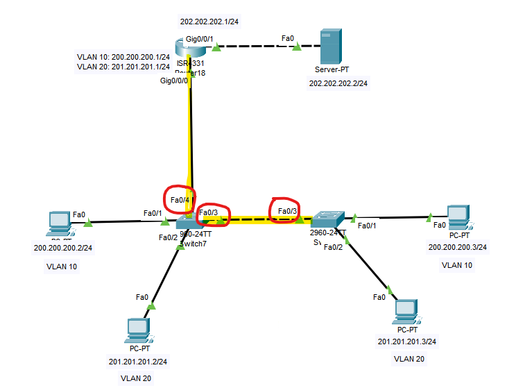 위 토폴로지를 보면, VLAN을 설정하지 않은 VLAN 1 대역 (201.201.201.0/24) 하나, VLAN을 설정한 총무부 대역 (200.200.200.0/24)로 나누어집니다. 이처럼 VLAN을 사용하면 실질적으로 하나만 있는 네트워크를 n개로 나누어 쓸 수 있습니다. (IP 주소/대역도 분리)